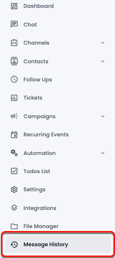 The Message History module lets you view all messages exchanged with complete details, whether customer name, number, direction, sent status, read status, and more.